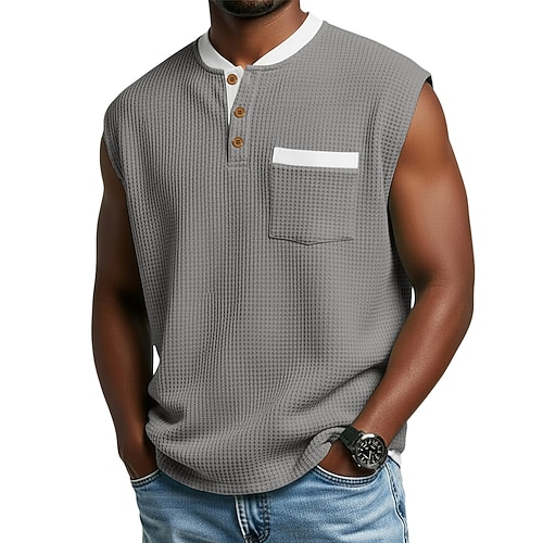 Per uomo Camicia a nido d'ape Canotta a nido d'ape Canotta Maglia Henley Senza Maniche Henley Estate Semplice Testurizzato Moda Designer Casual Bottoni All'aperto Palestra Uscire Nero Viola Verde