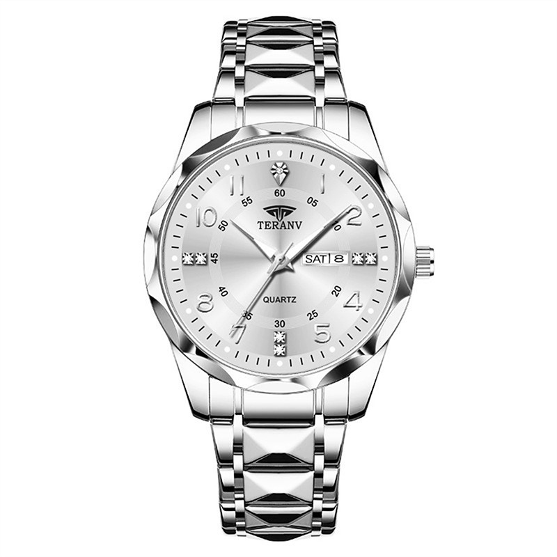 Fashionable Men's Quartz Watch Rhombus Digital Dial Dual Calendar Luminous Waterproof Steel Strip Watch Rhinestone Decoration Watch Business Watch Gift Preferred