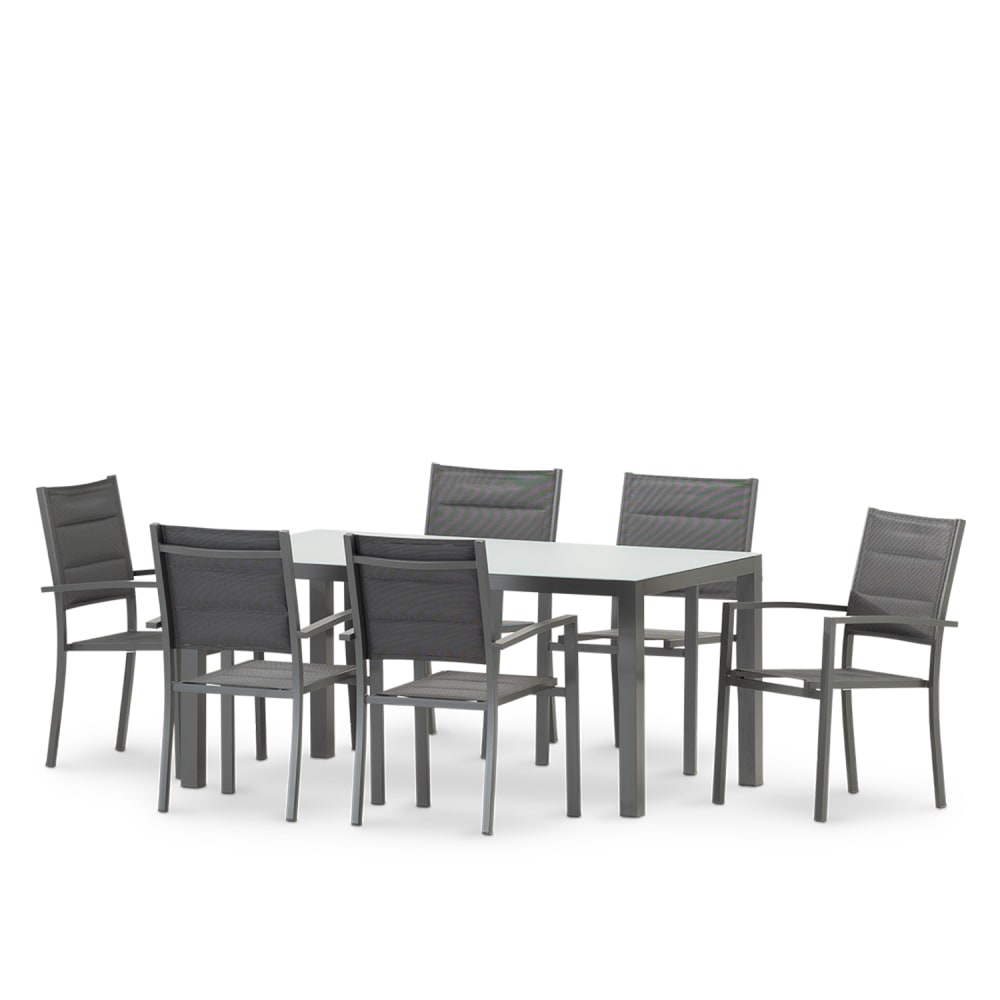 Set tavolo fisso 160×90 e 6 sedie da giardino antracite
