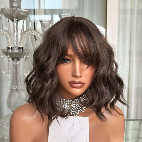 Capelli umani Remy 5x5 Chiusura 13x4 Fronte in Pizzo Parrucca Caschetto corto Con Frangia Capelli brasiliani Ondulato Marrone Castano ramato Parrucca 130% 150% Densità dei capelli con Capelli di
