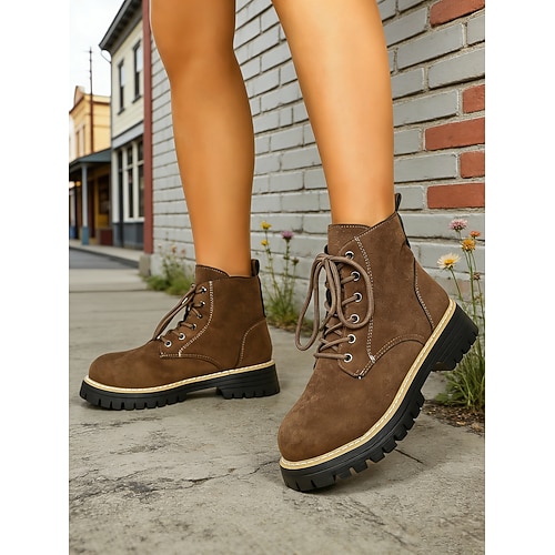 stivaletti allacciati marroni da donna con tacco spesso e rifiniture all'uncinetto, stivaletti vintage in finta pelle scamosciata per outfit casual ed eventi all'aperto