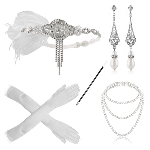1920er Flapper-Stirnband Der große Gatsby Kragenlos Kostüm Damen Karneval Maskerade Party-Abendmode Maskerade Erwachsene 1 Paar Ohrringe 1 Armband Handschuhe Ganzjahres