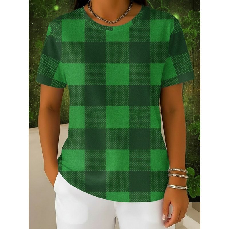 St. Patrick's Day Women's T Shirt Tee Top Geometric Shamrock Stylish Classic Casual Short Sleeve Crew Neck Regular Tops Daily Beach Wear Vacation Wear Print Grass Green Light Green Dark Green Green