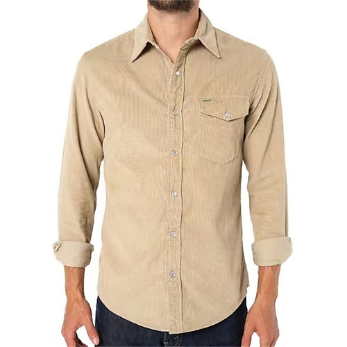 Herren Hemd Leinenhemd Sommerhemd Strandhemd Hemden zum Herausstecken Einfarbig Outdoor Urlaub Schwarz Braun Grün Khaki Langarm Umlegekragen Frühling Herbst Bekleidung Button-Down