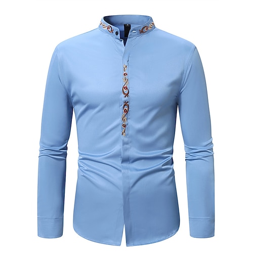 Per uomo Camicia Camicia Estiva Camicia casual Camicia da Spiaggia Camicia con Bottoni Nero Bianco Blu marino Blu reale Blu Manica Lunga Floreale Colletto alla coreana Vacanza Camicia hawaiana Ricamo