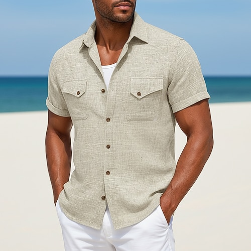Per uomo Camicia Camicia di lino Camicia Estiva Abbigliamento da spiaggia Tinta unica Casuale Vacanza Blu Blu marino Cachi Grigio Manica Corta Colletto a Camicia Estate Primavera Abbigliamento