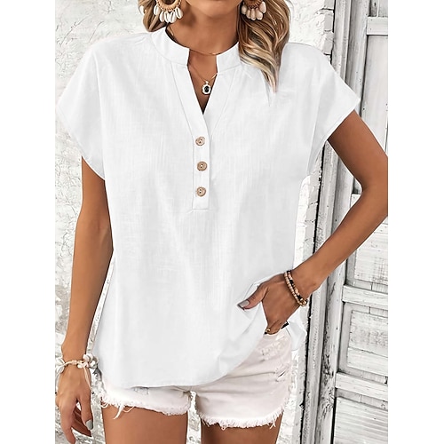 Per donna Camicie di cotone e lino Tinta unica Semplice Bohemien Vintage Elegante Senza Maniche Scollo a V Top Regolari Quotidiano Ferie Abbigliamento da vacanza Nero Bianco Rosa Blu marino Estate