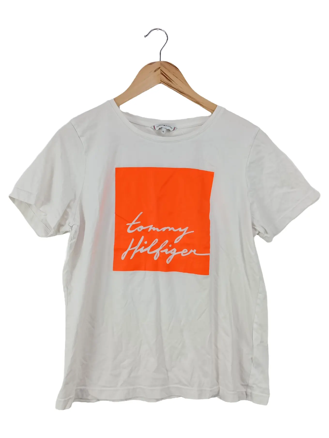 TOMMY HILFIGER Damen T-Shirt XL Weiß Casual Logo