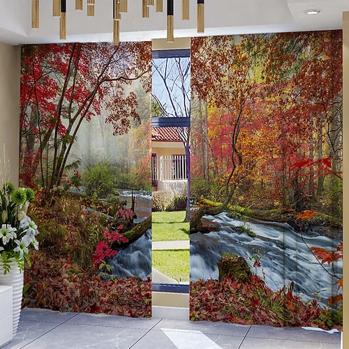 2 tende stampate con paesaggio di piante della foresta e sole, tende decorative per la casa in stile moderno con sacchetto per asta, adatte per cucina, caffetteria, soggiorno, balcone, giardino