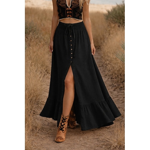 Per donna Gonna da vacanza Moda Casual Maxi Vita media Gonne Inelastico Nero Bianco Estate Cotone