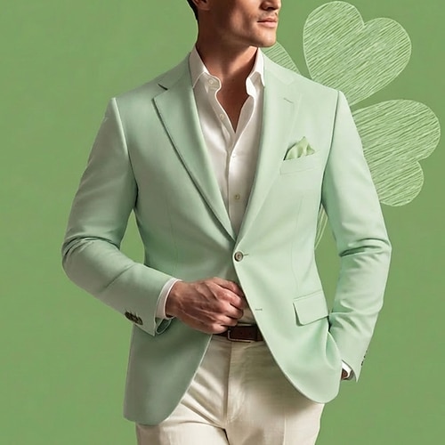 Per uomo Giacca blazer Colletto ad incastro Moda Leggero Classico Tinta unita Blazer Bianco Verde chiaro Rosa Vestibilità aderente Monopetto Due Bottoni