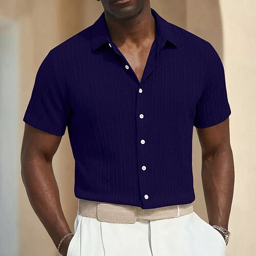 Per uomo Camicia Camicia casual Camicia da Spiaggia Camicia con Bottoni Camicia Jacquard Blu Nero Bianco Rosa Blu marino Manica Corta Semplice Bavero Casuale Abbigliamento casual alla moda