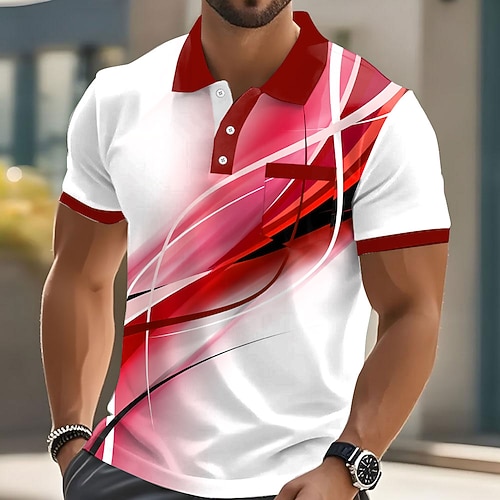 Herren Geometrisch Linie Poloshirts Kurzarm Polo-Shirts Hemden mit Kragen Business-Casual Outdoor Athleisure Alltagskleidung 3D-Druck Knöpfe Frühling Sommer Blau Meerblau Rote