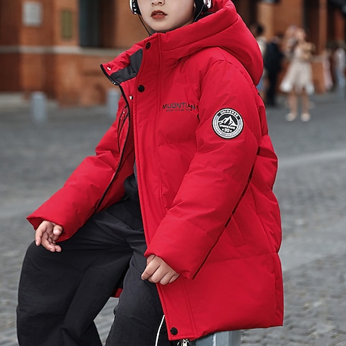Kinder Jungen Daunenmantel Kapuzenjacke Daunenjacke Oberbekleidung Buchstabe Langarm Tasche Mantel Outdoor Täglich Basic Schwarz Rote Blau Herbst Winter Ab 4 Jahren