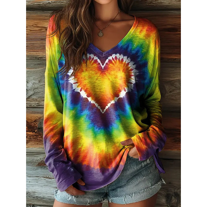 New Year Women's T Shirt Ombre Graphic Vintage Fashion Stylish Long Sleeve V Neck Regular Tops Daily Print Yellow Pink Red Orange Gold Summer Spring Fall