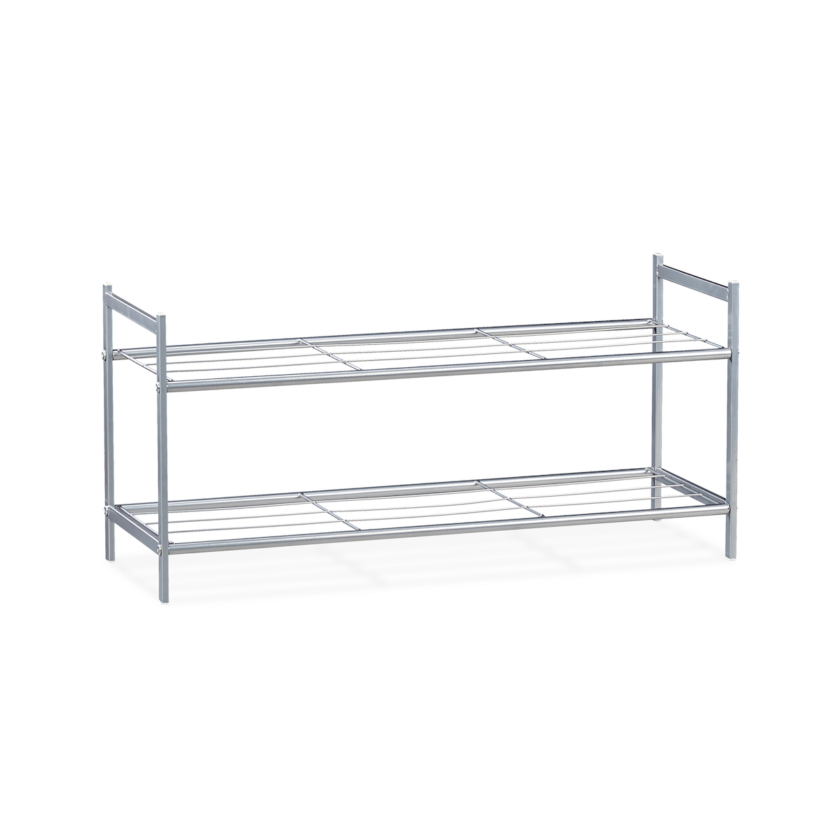 Relaxdays Schuhregal SANDRA, 2 Ebenen, für 6 Paar Schuhe, Metall, Schuhablage, HBT: ca. 33,5 x 69,5 x 26 cm, silber