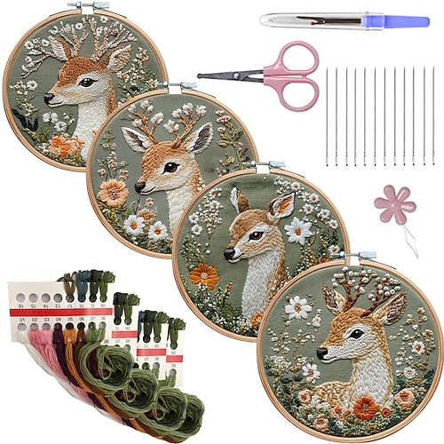 kit ricamo cervo: cervo sika fiori, ricamo fai da te per principianti