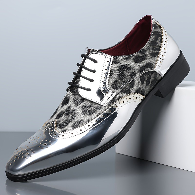 Men's Leopard Print Lace-Up Dress Shoes, Bold and Stylish Formal Shoes, Ideal for Parties, Weddings and Fashion-Forward Events, Comfortable and Trendy Footwear