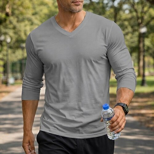 Per uomo Maglietta Camicia a Maniche Lunghe Manica Lunga Scollo a V Primavera Inverno Primavera Autunno Tinta unica Semplice Quotidiano Abbigliamento Sportivo Casual Base Puro Casuale Quotidiano