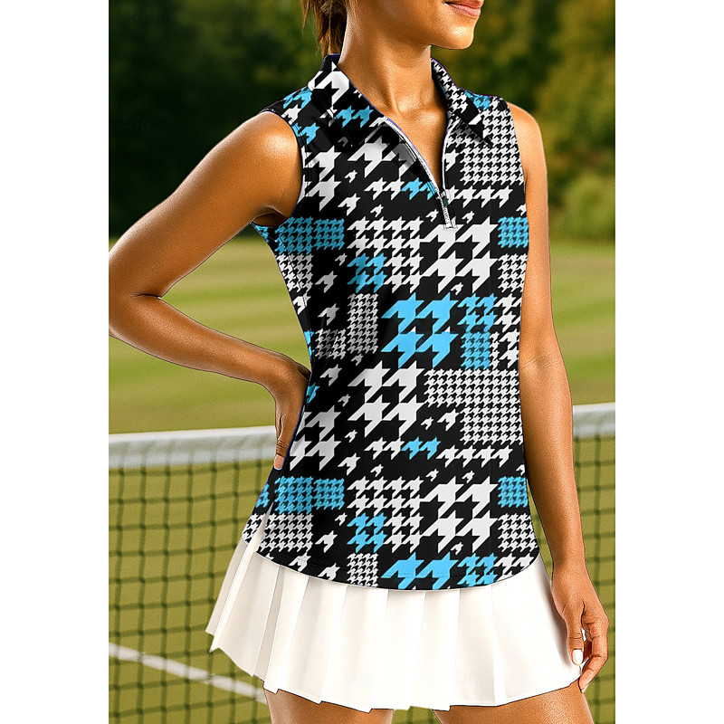 Women's Leopard Floral Tops Sport Shirt Golf Polo Shirt Tennis Shirt Sleeveless Zipper Floral UPF50 UV Resistant High Elasticity Moisture Wicking Breathable Tennis Pickleball Running Turndown Zip