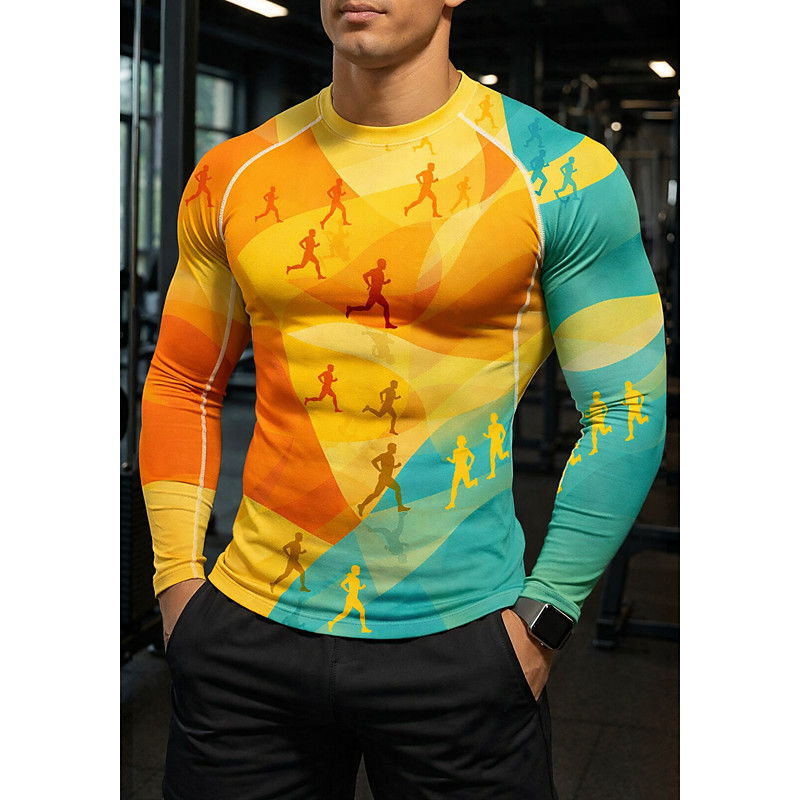 Men's Compression Shirt Running Shirt 3D Print Long Sleeve Base Layer Color Gradient Quick Dry Compression Power Flex Moisture Wicking Gym Workout Active Training Exercise Sportswear Activewear Blue