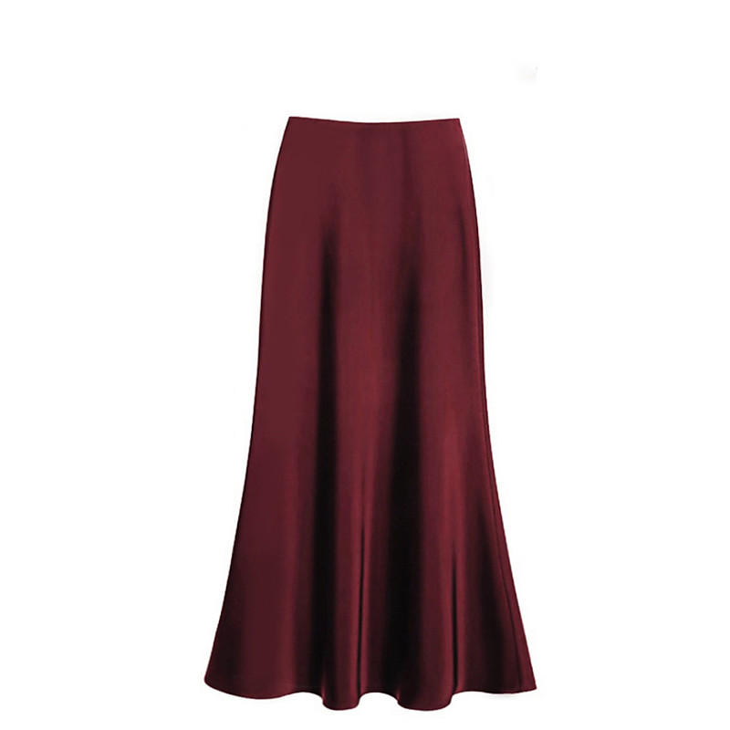 Women's Satin Skirts Elegant Vintage Fashion Casual Maxi High Waist Skirts Plain Ruched Patchwork Inelastic Daily Office / Career Light Pink Gray Green Wine Amethyst Summer Satin Polyester