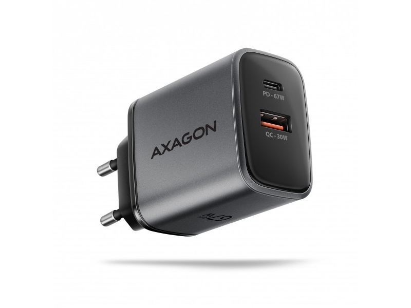 AXAGON ACU-PQ67 GaN-lader USB-C Power Delivery 3.0, USB-A Quick Charge 4 - grå (ACU-PQ67)
