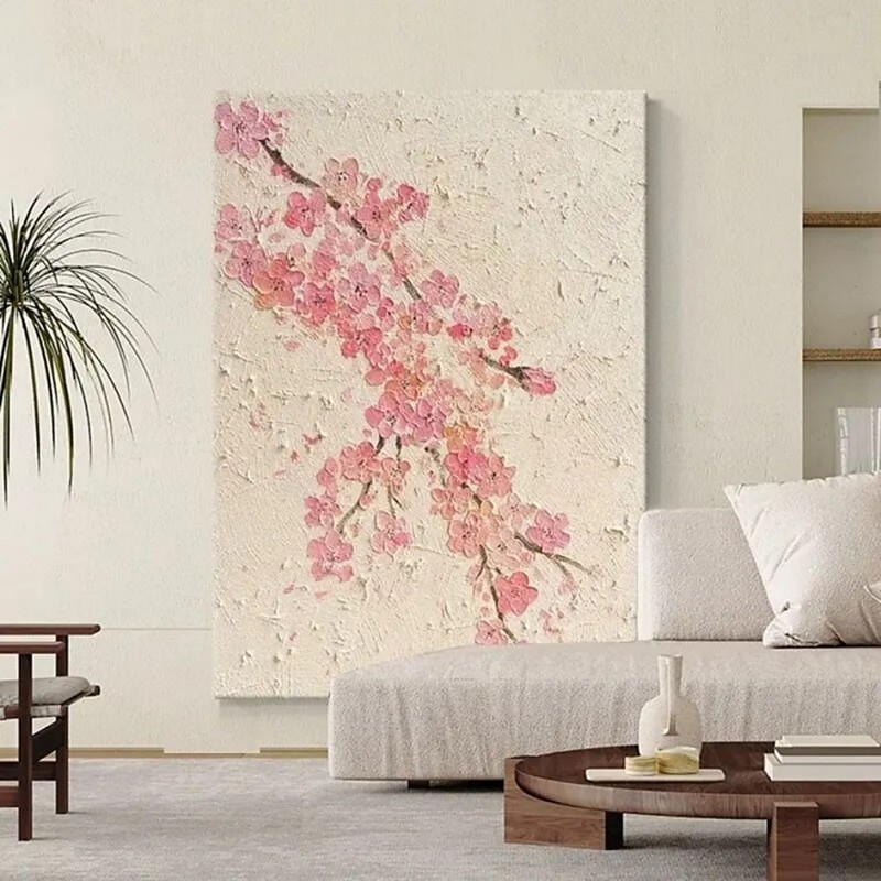 Handmade Oil Painting Canvas Wall Art Decoration Abstract Texture Flower Painting Pink Peach Blossom Living Room Entrance Hall Decoration Home Decor Rolled Frameless Unstretched Painting