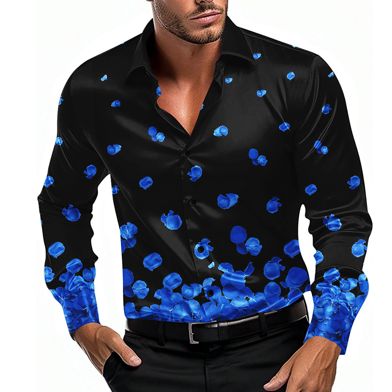 Men's Floral Print Petals Flowers Shirt Satin Shirt Dress Shirt Long Sleeve Fashion Casual Vacation Dailywear Summer Spring Fall Turndown 3D Print Button Up Shirts Black / Purple Black / Blue