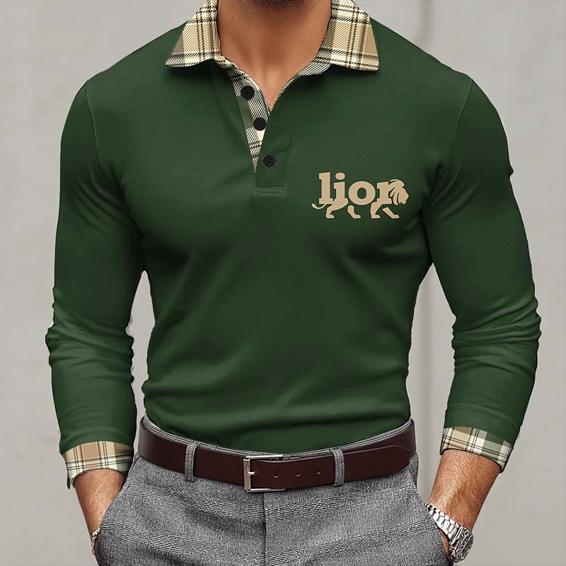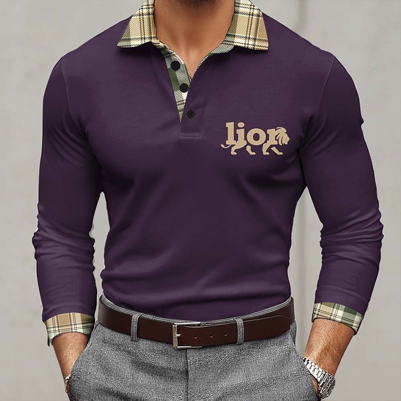 Men's Lion Polo Long Sleeve Polo Shirts Lapel Business Casual Outdoor Street Athleisure Daily Wear 3D Print Buttons Spring Fall Blue Red Purple