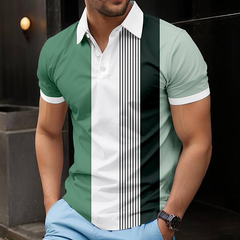Men's Stripes Polo Short Sleeve Polo Shirts Lapel Casual Athleisure Daily Wear 3D Print Buttons Summer Blue Sky Blue Purple