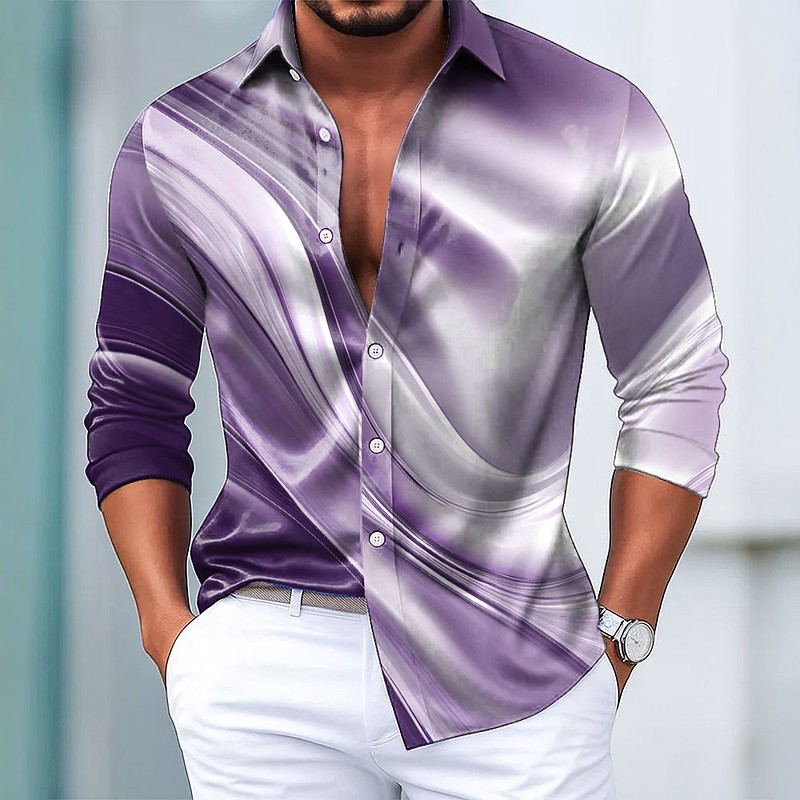 Men's Geometric Gradient Waves Shirt Satin Shirt Dress Shirt Long Sleeve Fashion Casual Vacation Dailywear Summer Spring Fall Turndown 3D Print Button Up Shirts Blue Dark Khaki Purple Green