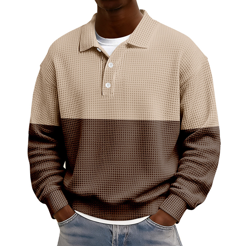 Men's Stripe Waffle Polo Shirts Golf Shirt Long Sleeve Polo Shirts Collared Shirts Casual Business Casual Dailywear Athleisure Buttons 3D Print Spring Fall Winter Blue Purple Brown