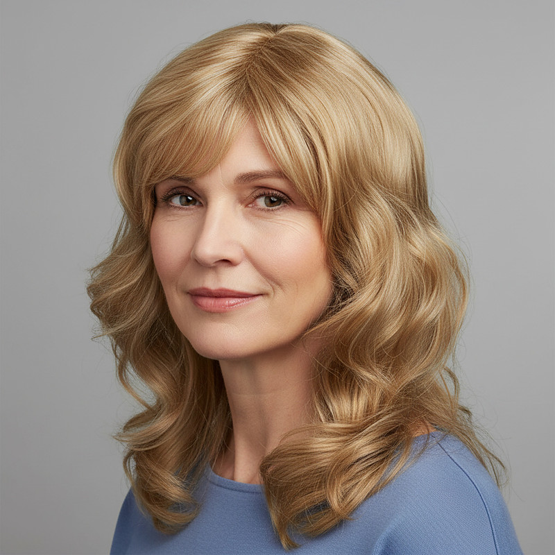 Wigs for Women Shoulder Length Wavy Brown Hair with Bangs, Natural Looking Heat Resistant Synthetic Fiber Wig for Daily Party Use