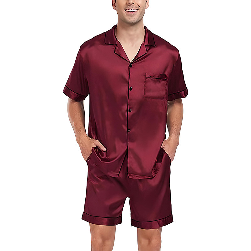 Men's Sleepwear Pajama Set Pajama Top and Shorts 1 set Plain Fashion Stylish Classic Daily Home Bed Spandex Polyester Comfort Soft Breathable Lapel Short Sleeve Shirt Shorts Elastic Waist Buttons