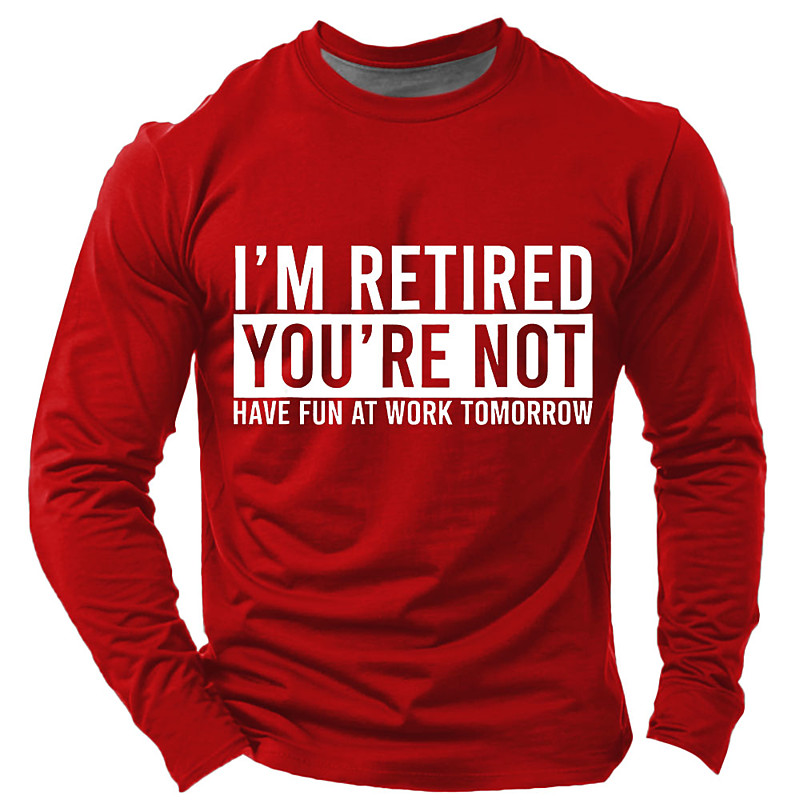 Funny Retirement Men's Long Sleeve T-Shirt with 'I'M RETIRED YOU'RE NOT HAVE FUN AT WORK TOMORROW' Work Humor Graphic Print