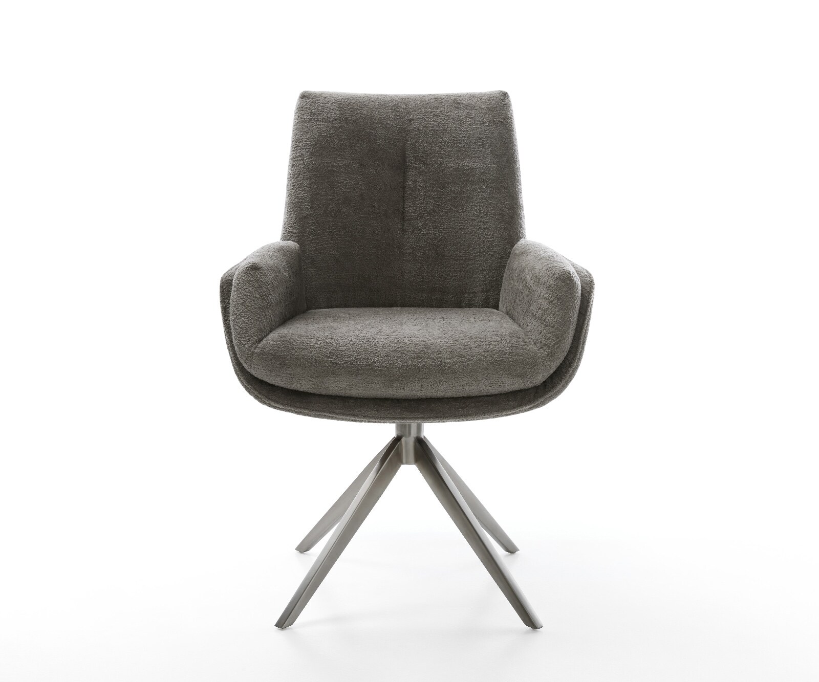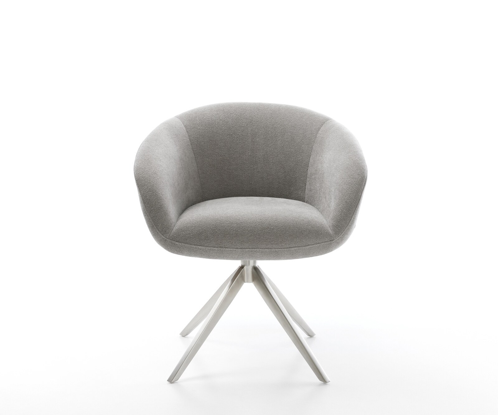 DELIFE Draaistoel Vinka-Flex met armleuning zachte stof met structuur grijs kruisframe breed roestvrij staal 360° draaibaar rocker-functie pocketveer kern