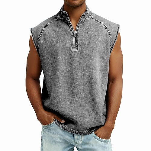 Da uomo Canotta Maglietta smanicata Camicia di Jeans Senza Maniche Con cerniera Estate Semplice Moda Designer Casual Stile Vintage Bottoni All'aperto Palestra Uscire Nero Verde chiaro Rosa Maglietta