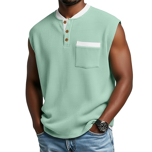 Per uomo Camicia a nido d'ape Canotta a nido d'ape Canotta Maglia Henley Senza Maniche Henley Estate Semplice Testurizzato Moda Designer Casual Bottoni All'aperto Palestra Uscire Nero Viola Verde