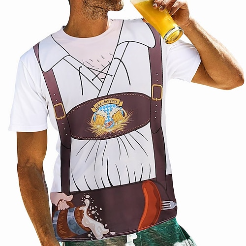 Stampa Corte Costume Cosplay T-shirt Birra Classico Stile da strada per Per uomo Adulti Stampa a caldo per Carnevale Birra Oktoberfest Feste Casual Quotidiano