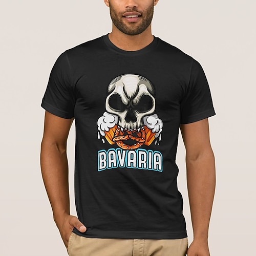 bavarese Monaco Tedesco Corte T-shirt Teschio Pretzel Grafico per Per uomo Adulti Stampa a caldo per Carnevale Birra Oktoberfest Feste Casual Quotidiano