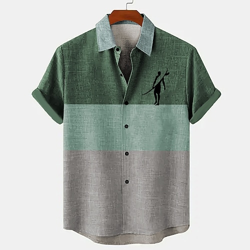 Per uomo Surf Camicia di lino Camicia hawaiana estiva Camicia con Bottoni Manica Corta Hawaiano Resort Vacanza Ferie Abbigliamento mare Estate Primavera Collo ripiegato camicie con colletto Blu Verde