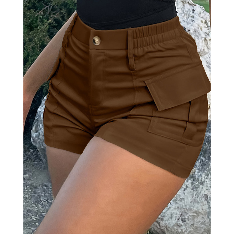 Women's Cargo Shorts Chinos Shorts Streetwear Casual Short Medium Waist Plain Pocket Elastic Waist Comfort Comfortable High Elasticity Daily Outdoor Streetwear Apricot Black Red Green Summer Spring