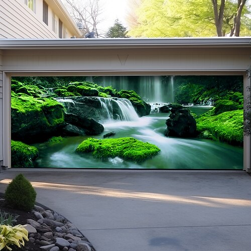 Foresta di muschio verde lussureggiante cascata panoramica porta del garage banner cartellone pubblicitario 3D paesaggio naturale esterno casa murale copertura resistente alle intemperie decorazione