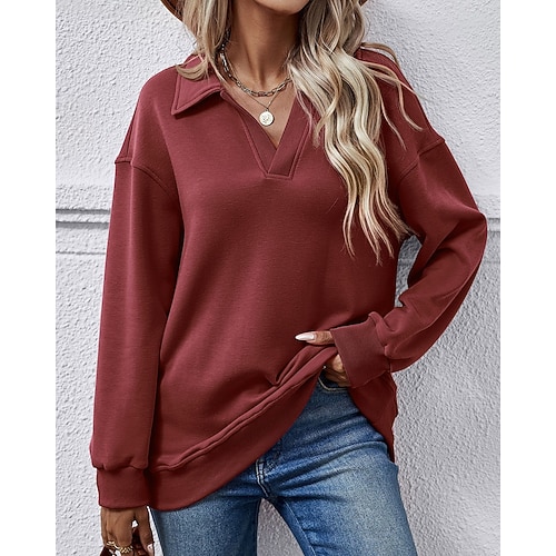 Per donna Felpa Pullover Semplice Streetwear Casual Manica Lunga Bavero Top Regolari Streetwear Abbigliamento Quotidiano Blu Rosso violaceo Rosa Azzurro cielo Rosso rosa Autunno Inverno