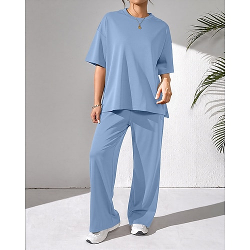 Per donna Moda Streetwear Set di Pantaloni Bolero Top Manica Corta Girocollo Tinta unica Patchwork Casuale Quotidiano All'aperto Blu Rosso Azzurro cielo Estate Vestibilità regolare