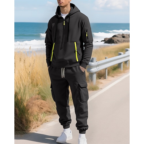 Per uomo Tuta da Ginnastica Set di abiti Set di felpe con cappuccio Felpa con Cappuccio All'aperto Quotidiano Sportivo Coulisse Tasca Mezza cerniera Semplice Nero Blu marino Cachi Poliestere