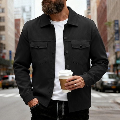 Per uomo Giacca Leggera Giacca Casual Giacca da Lavoro All'aperto Vacanza Tasca Primavera Autunno Tinta unica Streetwear Elegante Colletto Mao Regolare Nero Blu marino Cachi Grigio chiaro Grigio