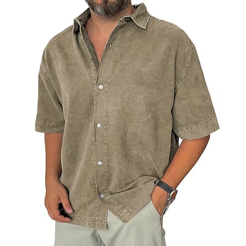 Per uomo Camicia Camicia Estiva Camicia casual Camicia da Spiaggia Camicia con Bottoni Nero Rosa Blu marino Azzurro cielo Viola Manica Corta Tinta unica Bavero Vacanza Quotidiano Bottoni Abbigliamento