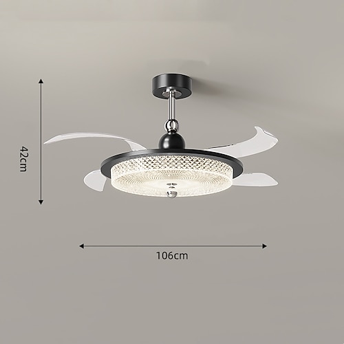 Ventilatori da soffitto a LED dimmerabili con telecomando, lampada da soffitto a filo da 106 cm, paralume in acrilico, lampadario, camera da letto, soggiorno